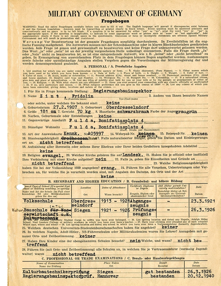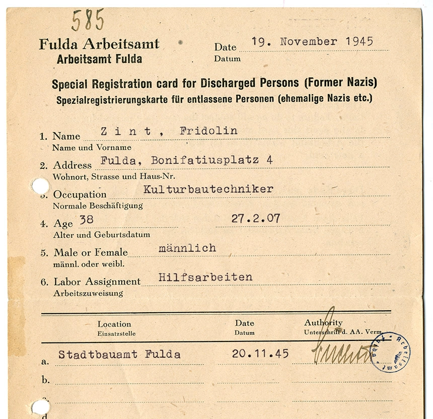 Zu Beginn wurden ehemalige Nationalsozialisten in leitenden Positionen im öffentlichen Dienst und der Wirtschaft entlassen. Laut eines Befehls der Militärregierung vom August 1945 sollten alle Mitglieder der NSDAP, die vor dem 1. Mai 1937 in die Partei eingetreten waren, entlassen werden. Bis Ende September 1945 wurden insgesamt 113 Beschäftigte der Stadt Fulda (Beamte, Angestellte, Lehrer und Arbeiter) entlassen. Die „Special Branch“-Abteilung der US-Militärregierung war für die Durchführung der Entnazifizierung und Umsetzung der Entlassungen zuständig.