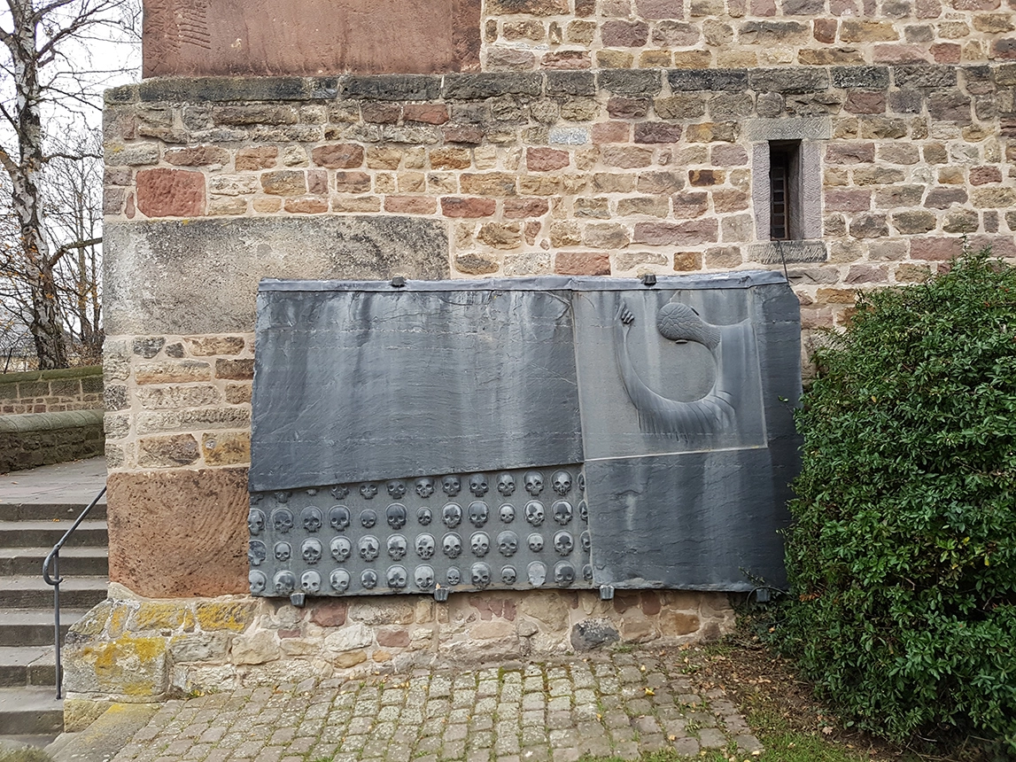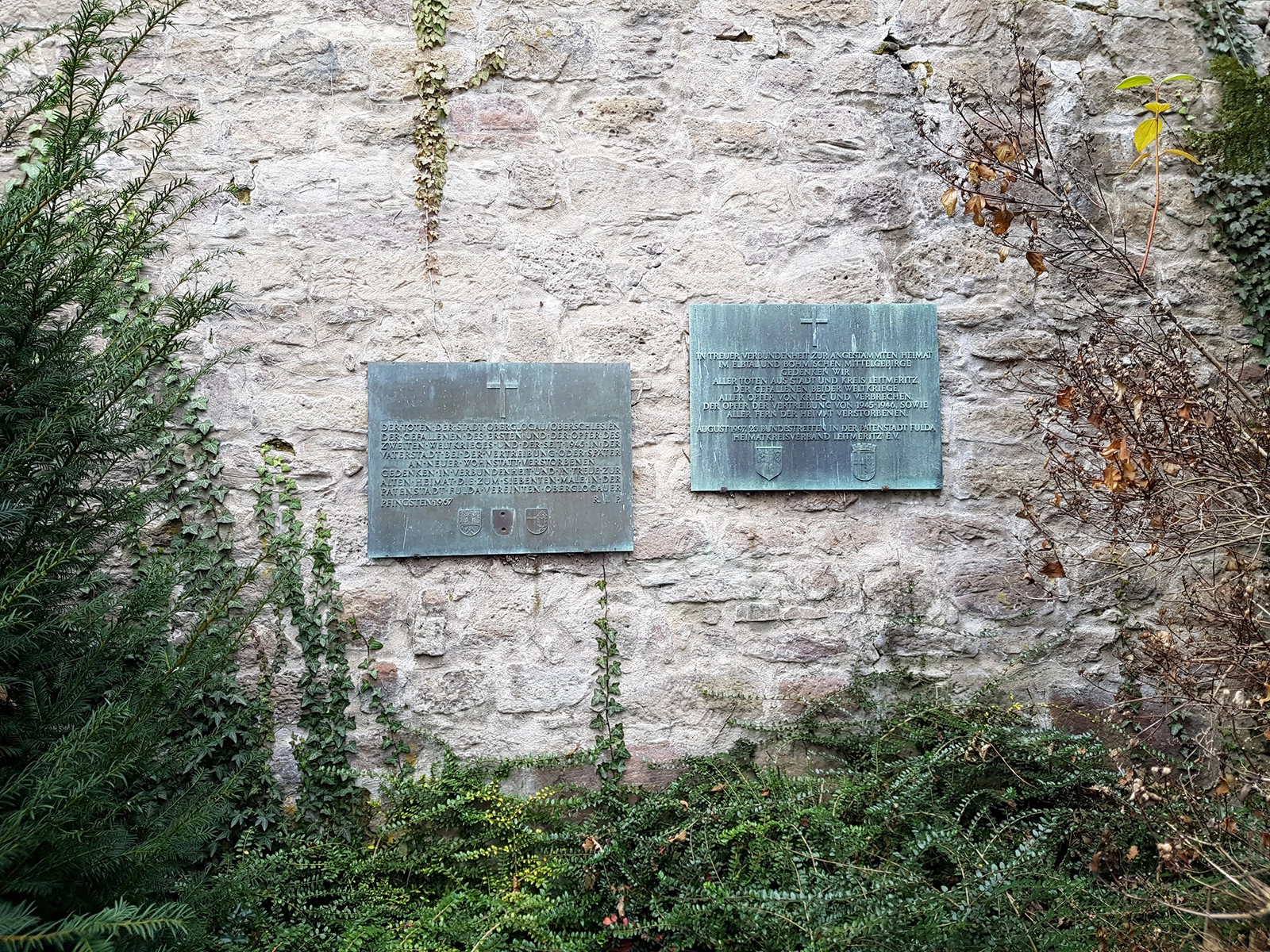 „Der Toten der Stadt Oberglogau/Oberschlesien, der Gefallenen des Ersten und der Opfer des Zweiten Weltkrieges und der seit 1945 in der Vaterstadt bei der Vertreibung oder später an neuer Wohnstatt Verstorbenen gedenken in Verbundenheit und in Treue zur alten Heimat die zum siebten Male in der Patenstadt Fulda vereinten Oberglogauer. Pfingsten 1967. R.I.P.“